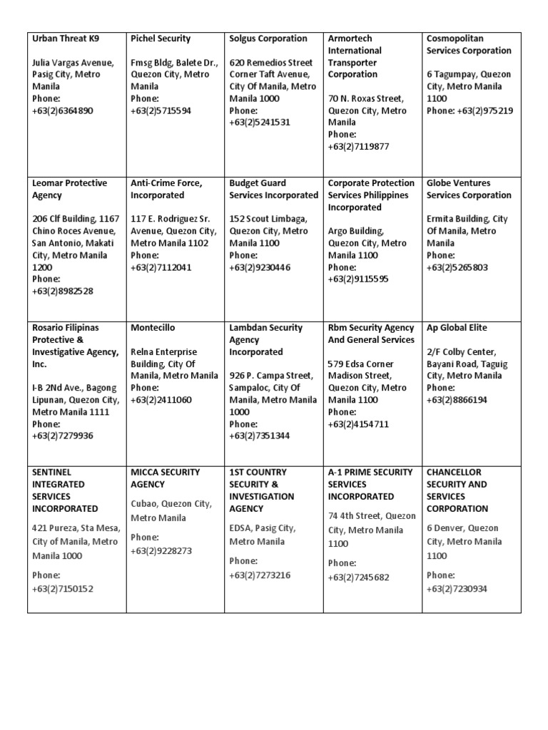 Philippines Security Agencies Metro Manila Makati www.scribd.com