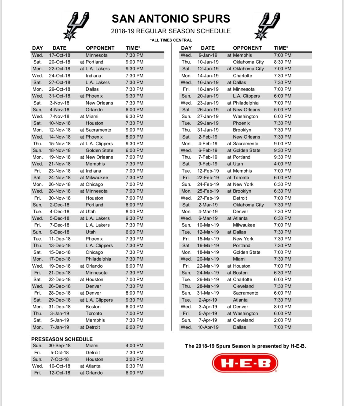 Visit espn to view the san antonio spurs team schedule for the current and previous seasons. 901 1st of 30 srs. The spurs will also play each opponent of the opposite conference twice with one game at home and one game away for a total of 30 games.